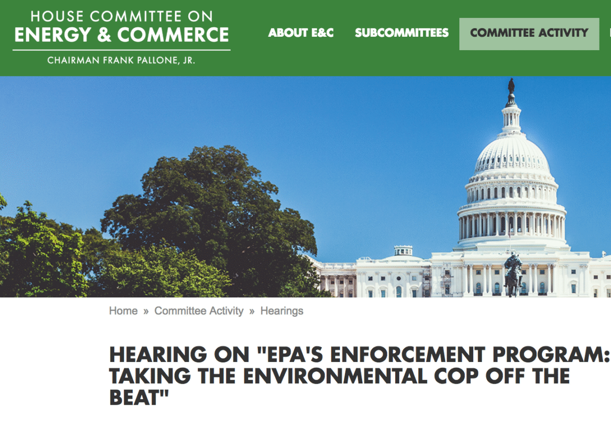 EDGI’s Congressional Testimony for Energy and Commerce Subcommittee Hearing: “EPA Enforcement: Taking the Environmental Cop off the Beat”