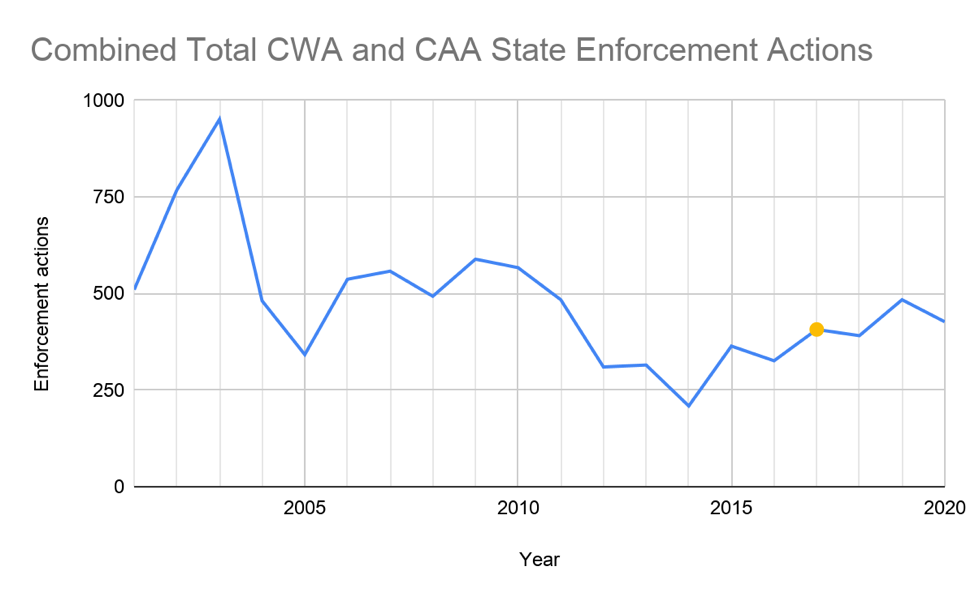 Inspections of polluting facilities are critical to environmental law, since they may uncover facilities’ violations of their permits. As its Office of Inspector General revealed last year, US EPA’s actions to ensure compliance declined between 2006 and 2018. Inspections dropped a full 33%, while the number of enforcement cases—written notices, administrative orders, and the like—dropped by over 50%. At the same time, the budget for these activities was cut by about 20%.