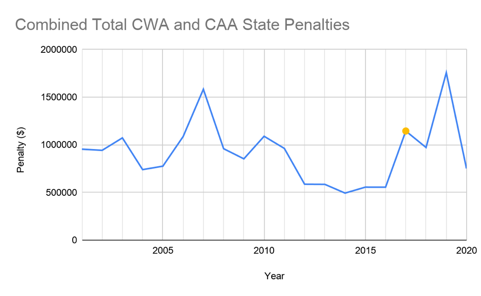The efficacy of the NC DEQ has been impacted by the state legislature, which determines state agency budgets. Republicans held veto-proof supermajorities in both the NC Senate and NC House of Representatives 2010-2018, and have retained a majority in both chambers since 2018. North Carolina had Democratic governors from 2001 to 2013 and legislative chambers that were narrowly controlled by Democrats for most of the first decade of this century. The period of Republican supermajorities in the NC state legislature coincided with a plummet in NC DEQ inspections, enforcement actions, and penalties levied. Given this context, the performance of the NC DEQ during Regan’s tenure is even more compelling.