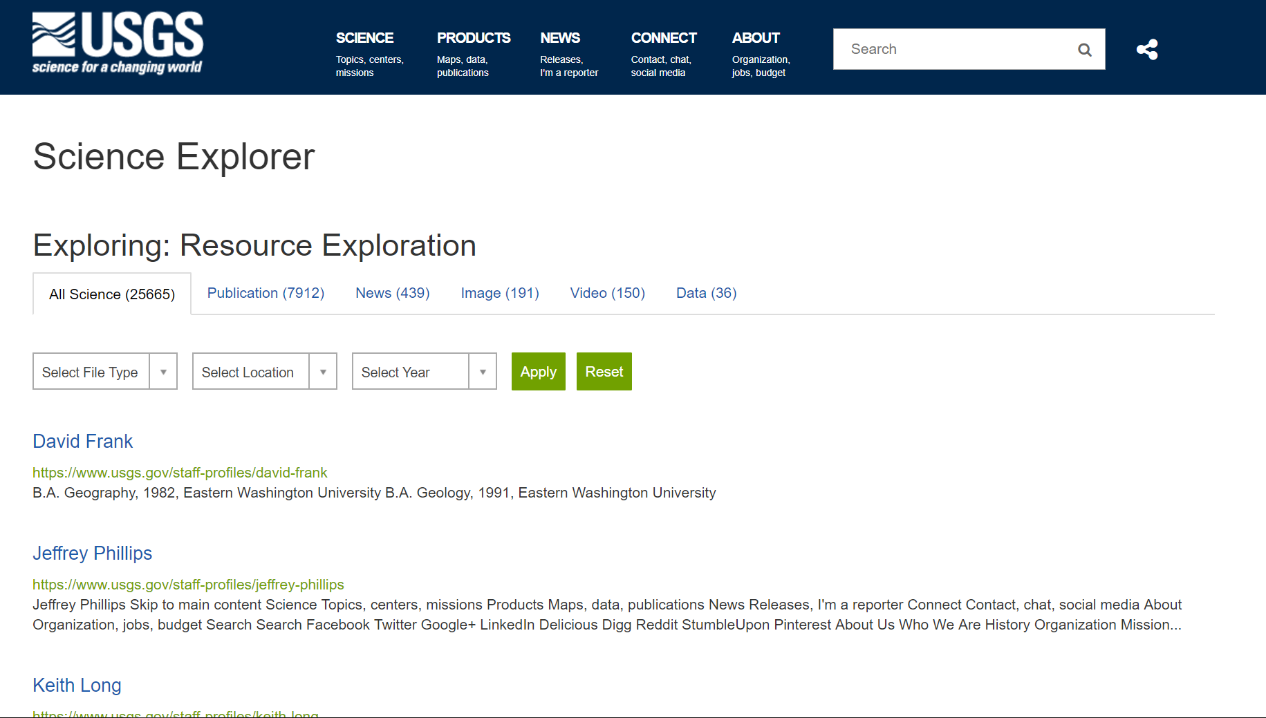 If you’re not familiar with the Science Explorer, when a member of the public searches this site, it returns results with links, dates, and descriptions corresponding to other Web resources, such as webpages, images, videos, and data, but it does not itself host that content.