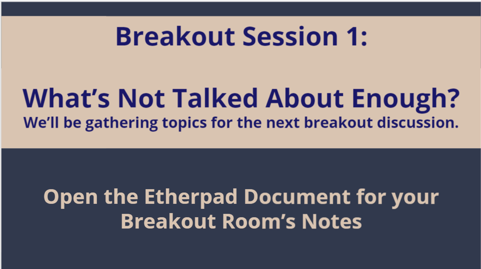 - Have a designated area for written down questions and answers (chat room, Etherpad, or HackMD)