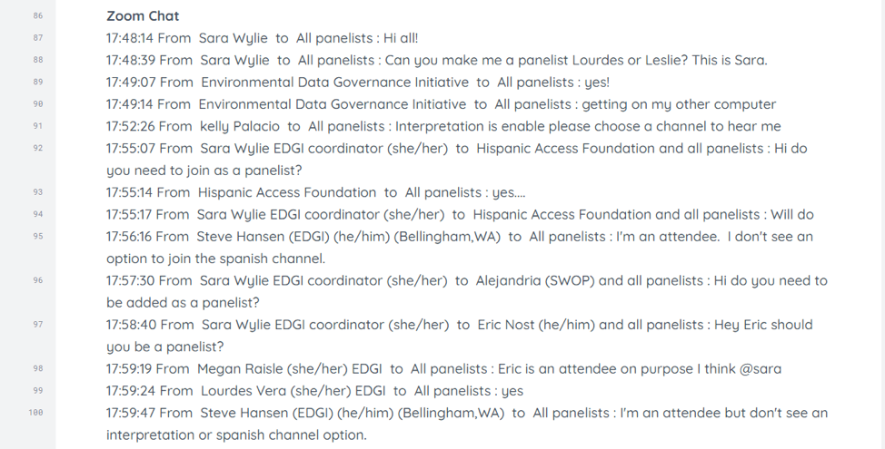 - Provide a copy of the Zoom chat