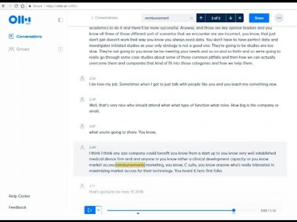 - Provide an event transcript